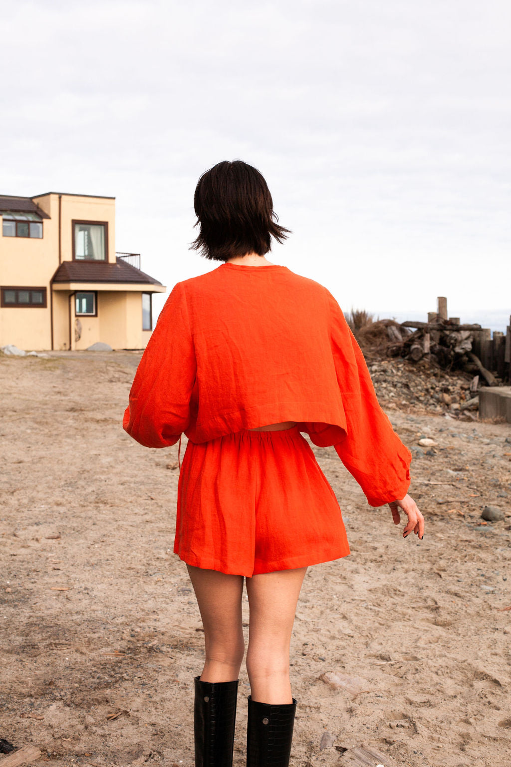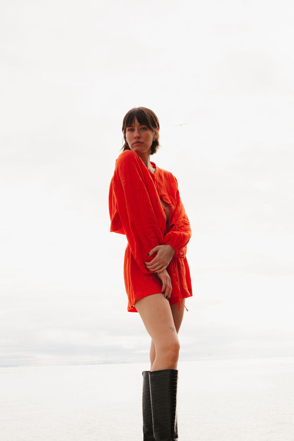 Bohème short goes with everything and is a nod to 90's simplicity with an elasticated waist. Roll the waist band for a shorter length.
