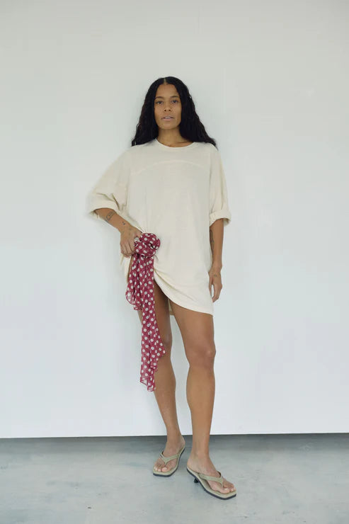 An oversized football tee with just enough extra length to wear it as a mini dress if you're under 5'8.