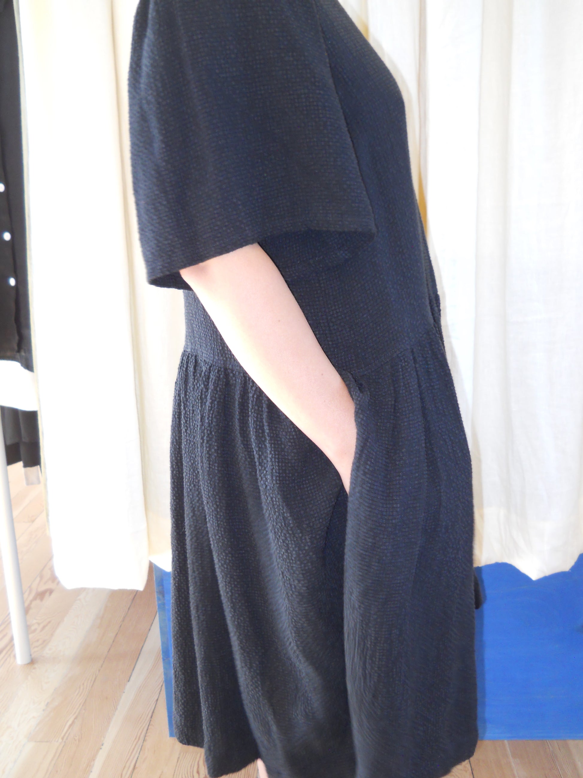 Black Mini Agnes Dress by Shelter Clothing. Woven linen/rayon blend.