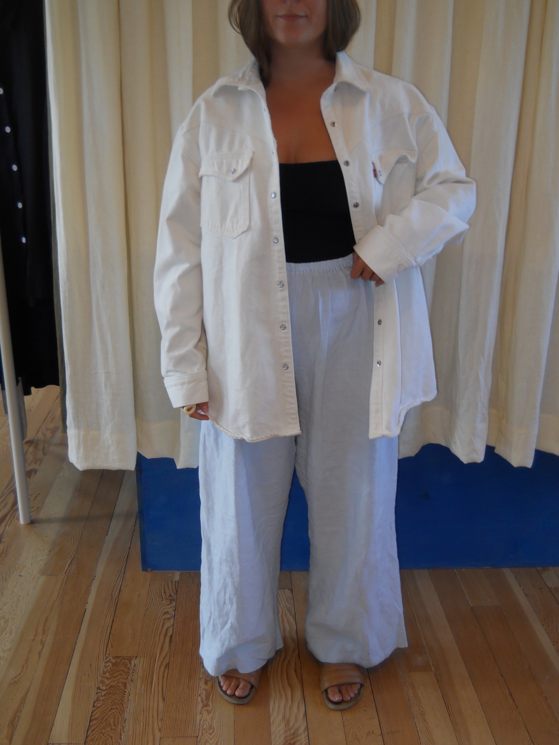 Denim Shirt Jacket by Levi's. 100% cotton. Two front pockets. Iridescent buttons.