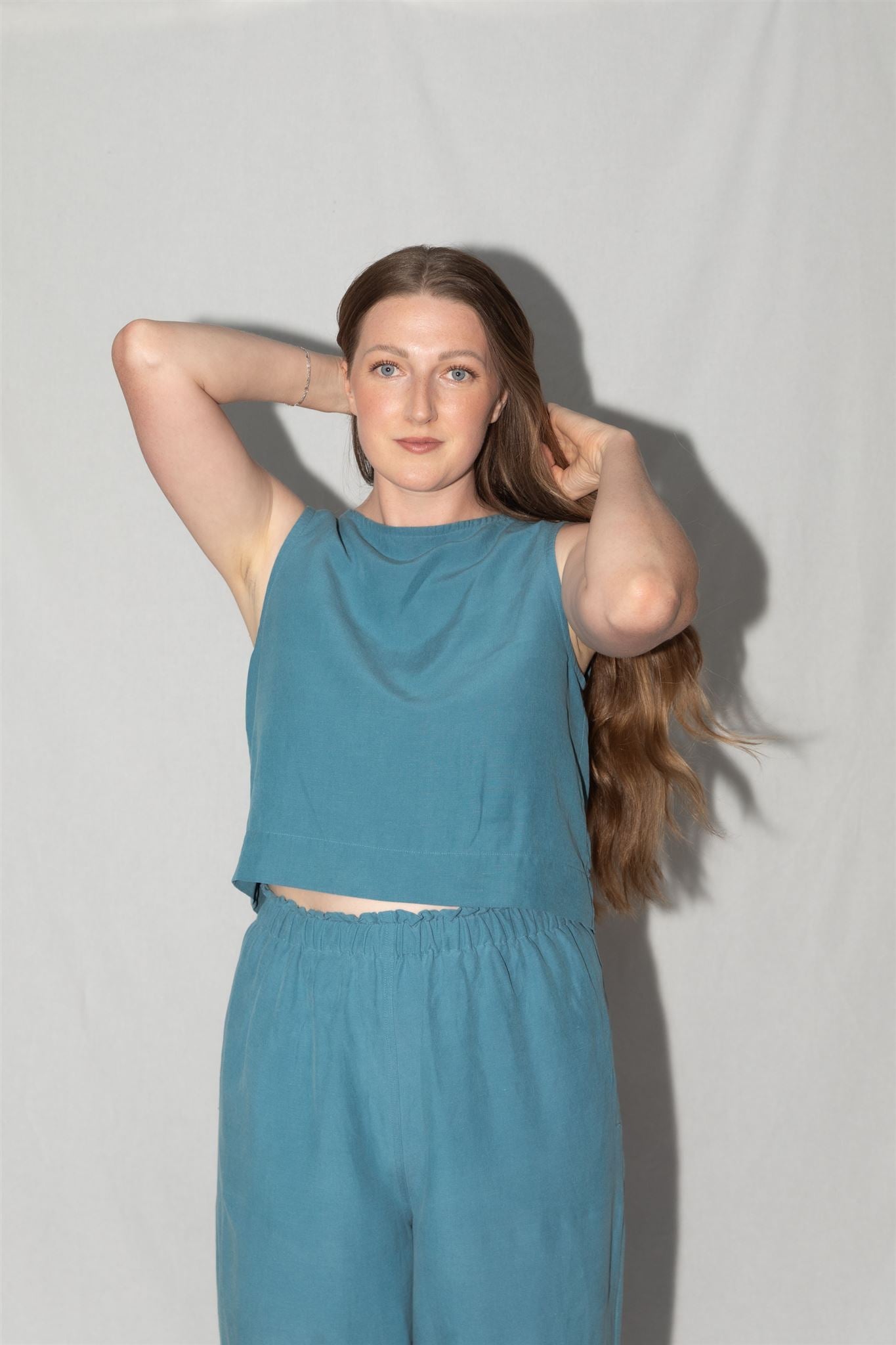 Lou Tank by Shelter Clothing in Poolside. Cotton/linen blend.