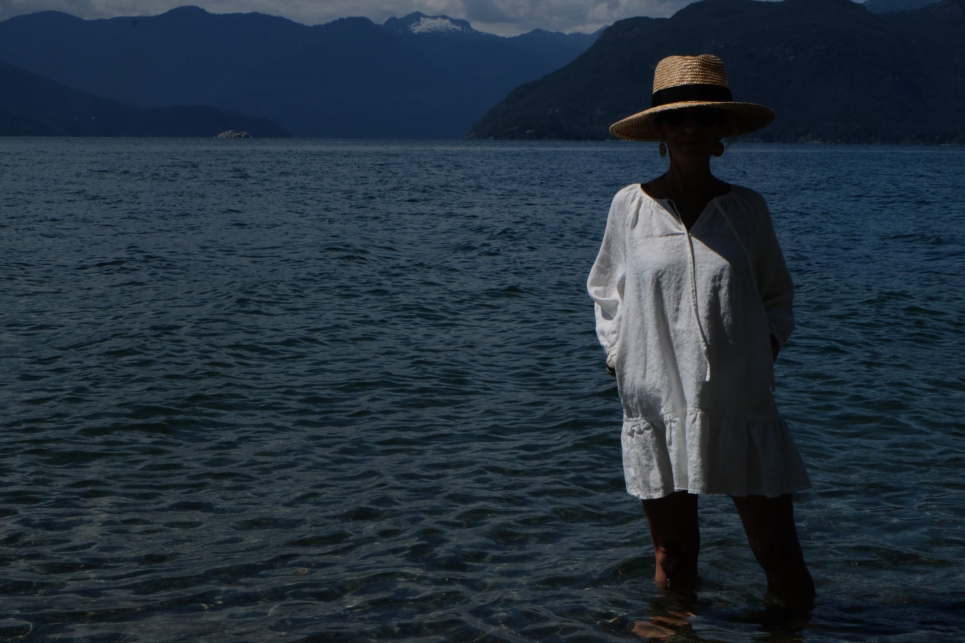 A classic peasant dress, best suited for frolicking in meadows or playing at the beach. Features side pockets and front tie to bow or leave relaxed.